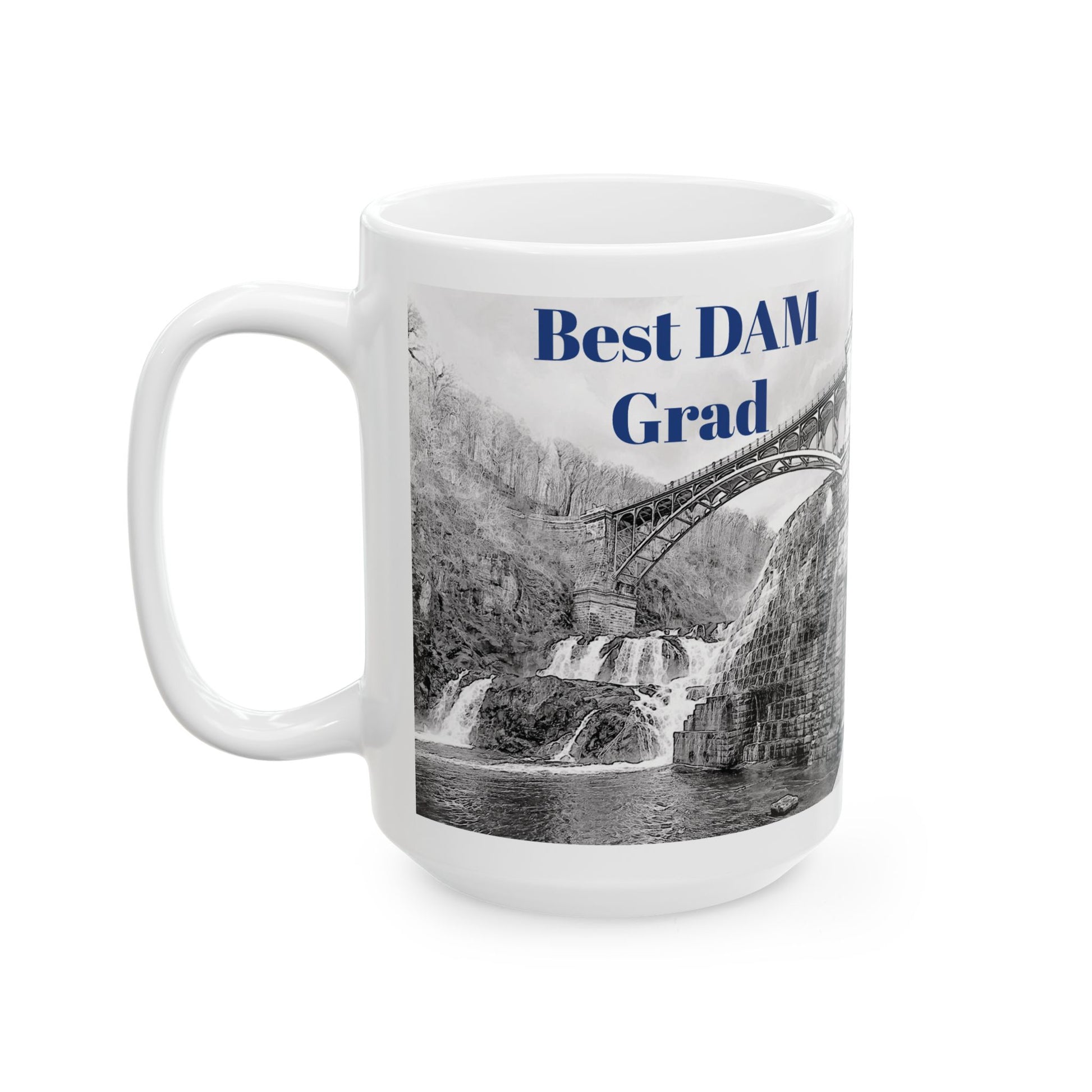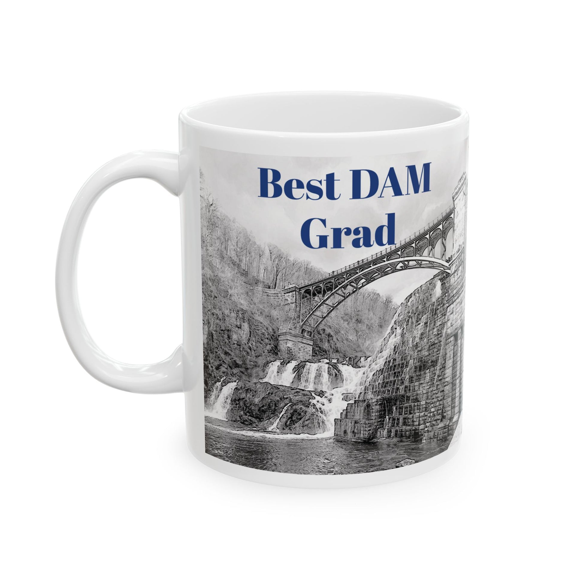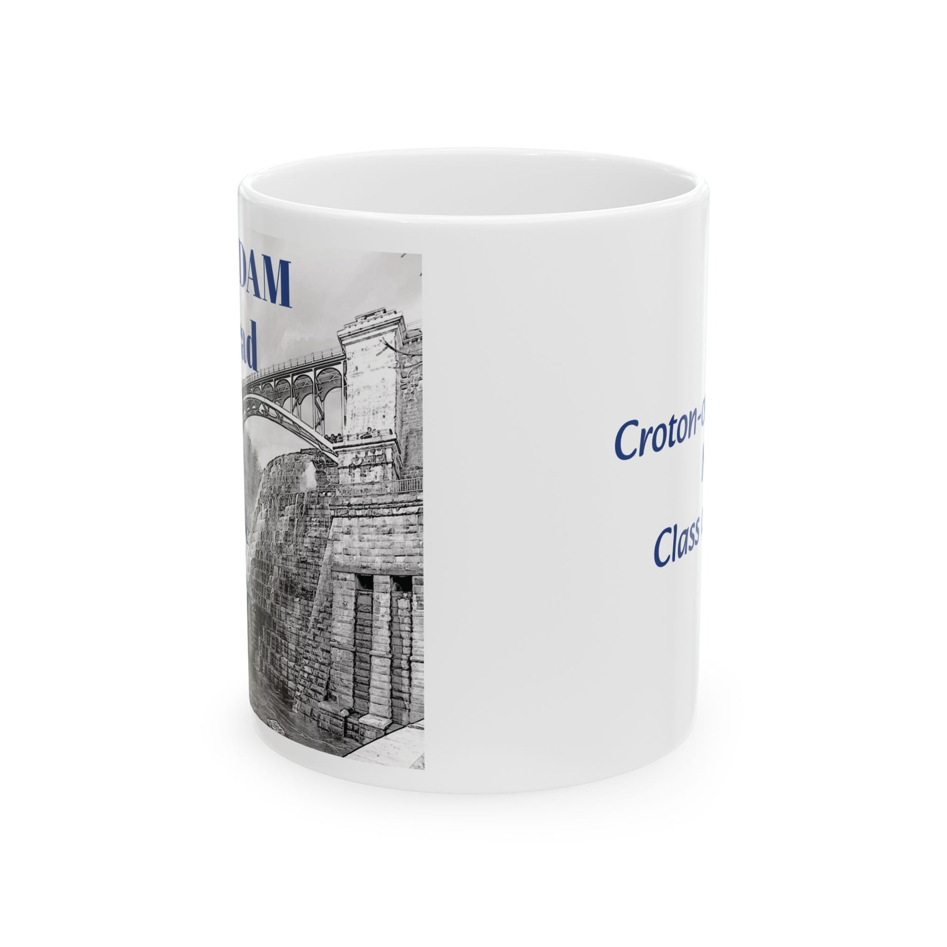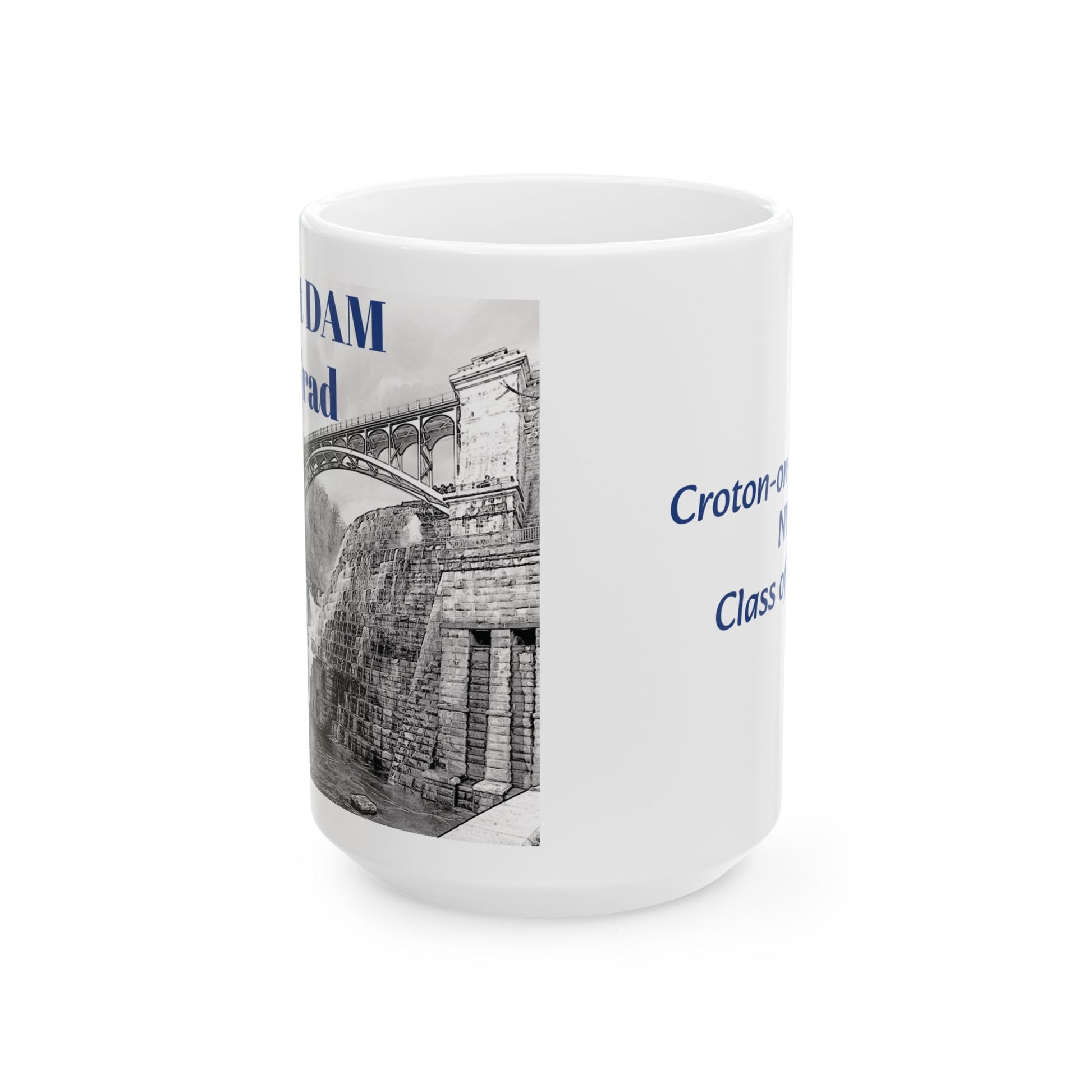 Perfect CHHS grad gift and souvenier to take to college! Black and white graphic design of the Croton Dam and th other side says Croton-on-Hudson, NY Class of 2025! This mug is all the things - BPA and lead-free, microwave & dishwasher-safe, and made of white, durable ceramic. Excellent gift! Comes in 2 sizes - 11-ounce and 15-ounce depending on your hot beverage needs! Show some hometown LOVE.