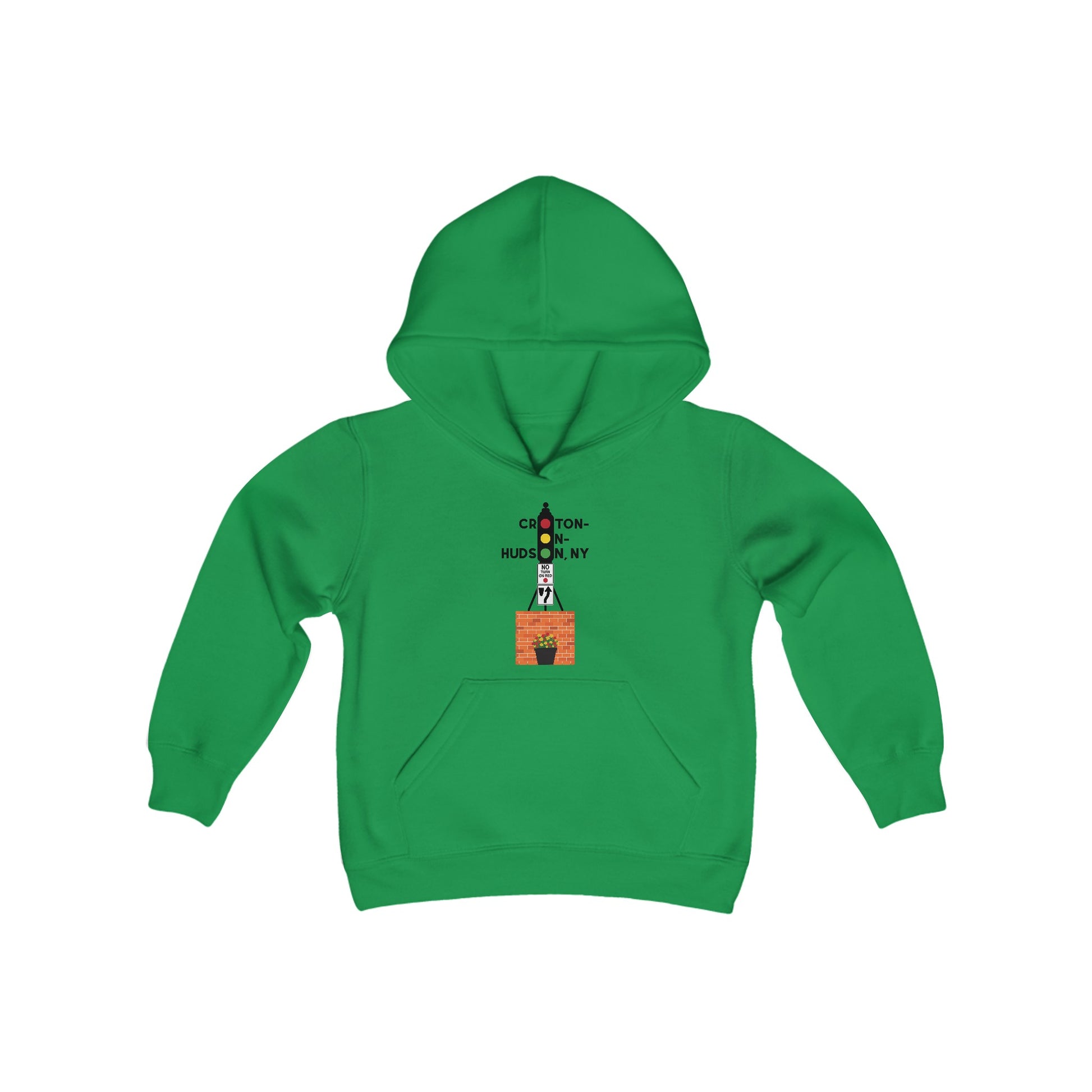 This is the OG of the Dummy Light designs with Croton-on-Hudson spelled out in the traffic signals! This youth blend hooded sweatshirt is made of ultra-soft, preshrunk fleece that is super soft! The front has a kangaroo pocket and the neck is reinforced with twill taping.